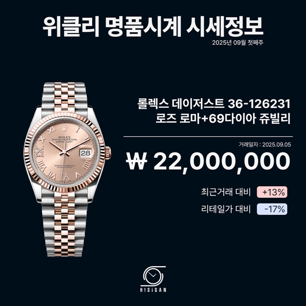 롤렉스 데이저스트 36-126231 로즈 로마+69다이아 쥬빌리